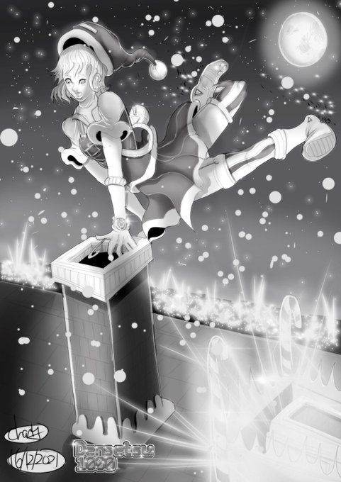 Leapfrogging down chimneys. #anime #manga #design #character #oc #artwork #digitalart #digitalartwork #illustration #procreate #santaclaus  #sabta #fatherchristmas #uk #stars #night #sky #moon #monochrome #contrast #costume #dress #dungarees