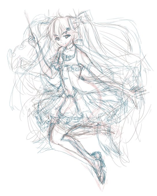 #皆さんラフと完成絵を見せてください っていうタグを見かけたので便乗 下描き→線画→塗り→完成