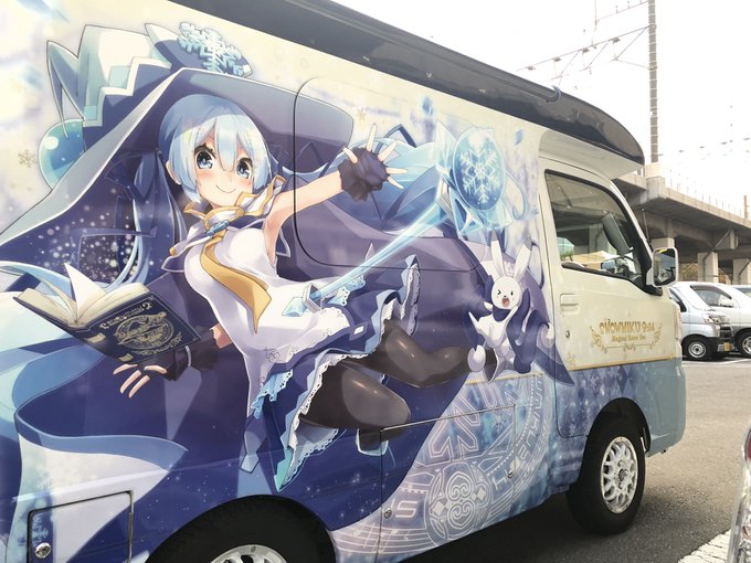 ようやく浜木戸さんの車見れた。描いてからそろそろ一年経つけどホントかわいいと思う…。#雪ミクハイゼット