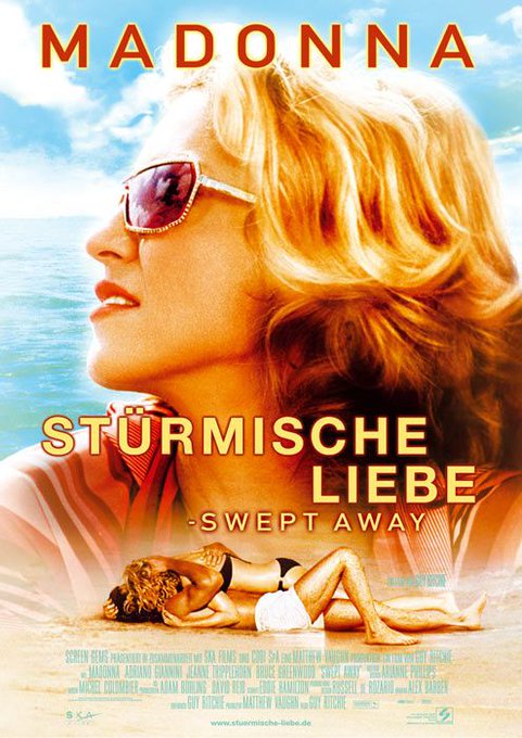 【ポスター】スウェプト・アウェイ (2002) Swept Away 1番オリジナル 監督名が右下にあるがとってつけた感がひどい 2番日本、ちょうどいい余白が真ん中にあったので題字入れました。3番ドイツ、マドンナデカッ! 監督ガイ・リッチー #DOTD #映画 #poster #デザイン #7月15日 #ファミコンの日