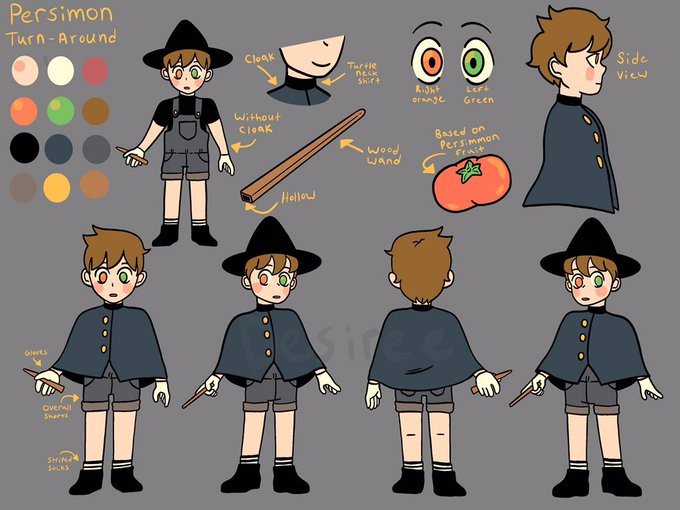 I figured I need to start doing more turnarounds and character sheets if I’m wanting to go into character design so here’s m’boy Persimon!