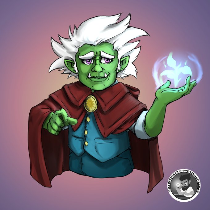 This artwork of Nogu Dhostk, a half-orc Druid as seen on tonight's episode of the Broken Twelve was done by the incredibly talented @DiceDeedsArt big thanks to them!