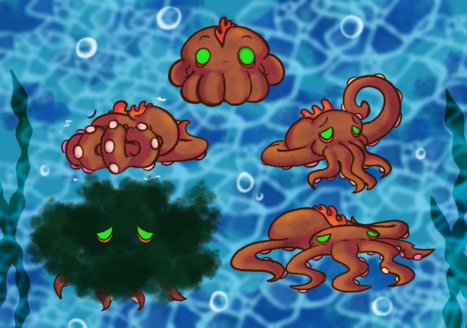 A doodle page commission for @sugodric and their shy little cephalopod Bubbles.