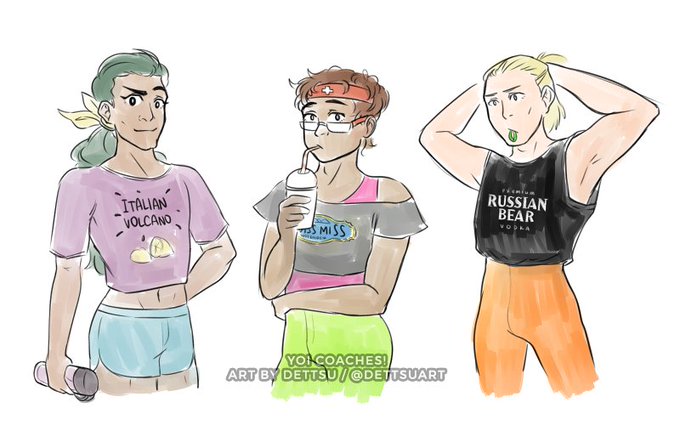 #yurionice coaches in exercise clothes because i found some funny brand names