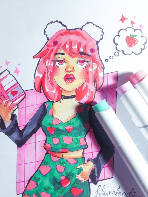 #illustration #traditionalart #ArtistOnTwitter #cartoonart #cuteart #cutegirls #alcoholmarker #ohuhumarkers #ohuhubrushmarkers #asthetic #strawberrydress