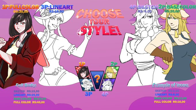 @Nowah_Ru Oioi, aqui estão alguns dos meus trabalhos, meus preços são muito baratinhos e negociáveis, por exemplo a sua proposta de halfbody colorido seria aproximadamente 30 $ mas como ja disse, negociável:)