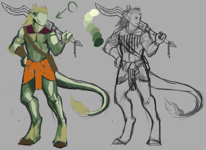 hey remember when I posted art on this twitter? HERE HAVE SOME😜 Concept design for an alien warrior called Braté. Slowly moving into the coloring/rendering phase... #characterdesign #conceptart