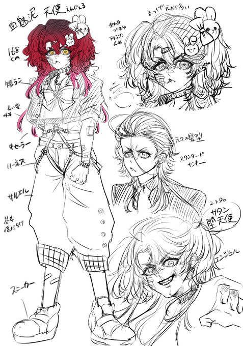 短編用キャラデザ2つ分できました!前半2枚が不良BL、後半2枚が着せ替え系創作男女です。服は要再検討
