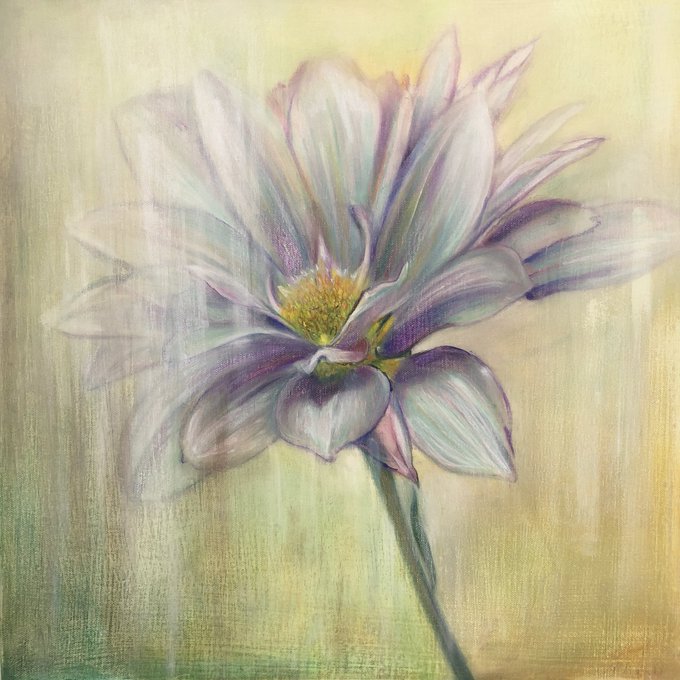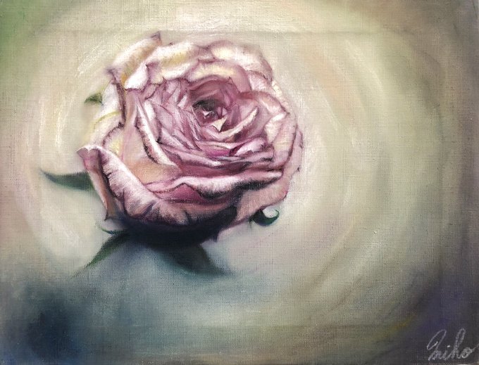 Miho Michelet個展、只今在廊しております。 どうぞよろしくお願いいたします(*^^*) 写真は昨日描いていた作品なのですが、重ね塗りが出来なくなってしまってダメにしてしまったものです。