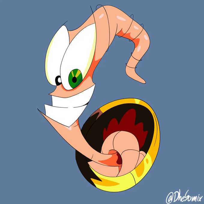 Una pequeña animación de un viejo personaje de videojuego, llamado Earthworm Jim.