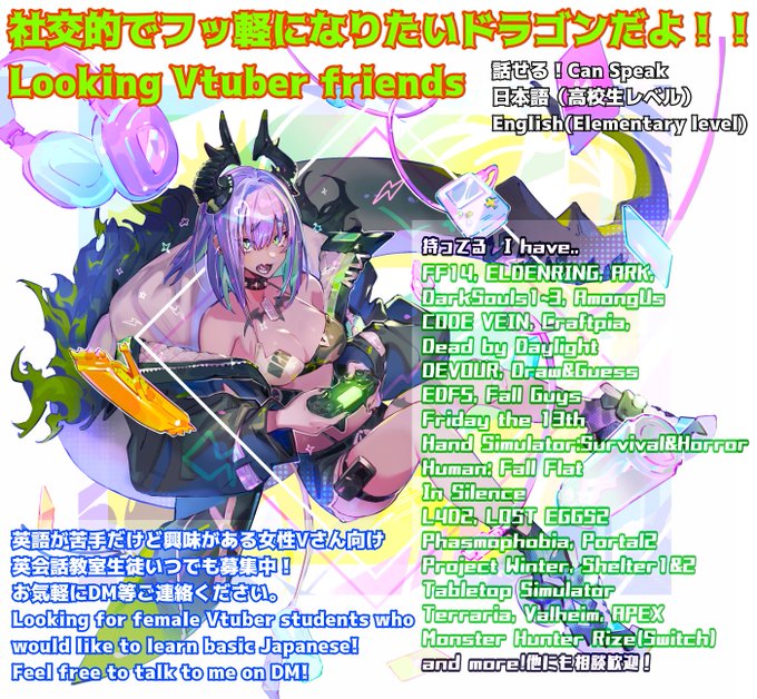 英語喋ったりゲームしたり絵描いたり3Dモデリングしたり楽しいと思ったことなんでも挑戦するよ!