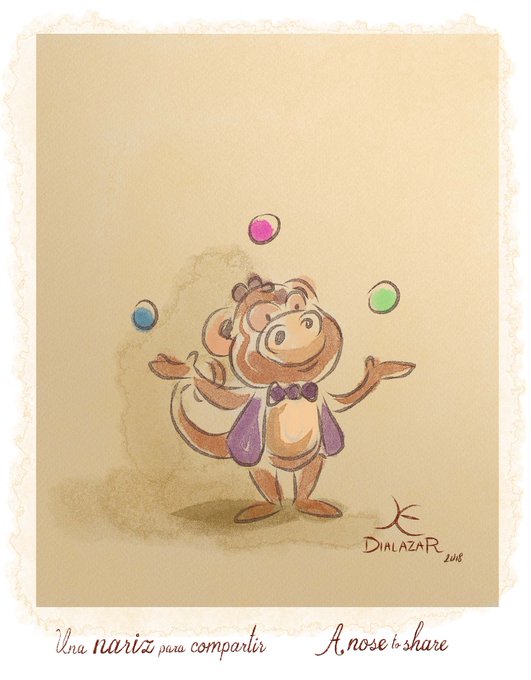 El mono malabarista. Boceto de personaje de "Una nariz para compartir". The juggling ape. Character sketch from "A nose to share".