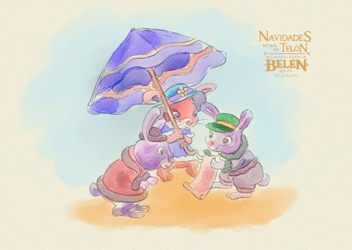 Tres conejos en el andén de la estación (boceto en acuarela)/Three rabbits on the station platform (watercolor sketch).