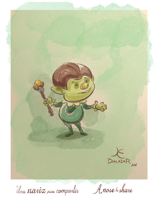 Duende verde. Boceto de personaje de "Una nariz para compartir". Green elf. Character sketch from "A nose to share".