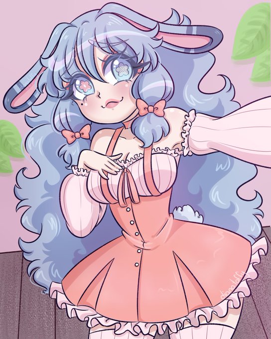 #bunnygirl #animegirl #cutegirl #cutedress #illustration #ocdraw #hazbinhotelcharacter #bluehair #demongirl #animestyle #animegirl #ribbon #pink