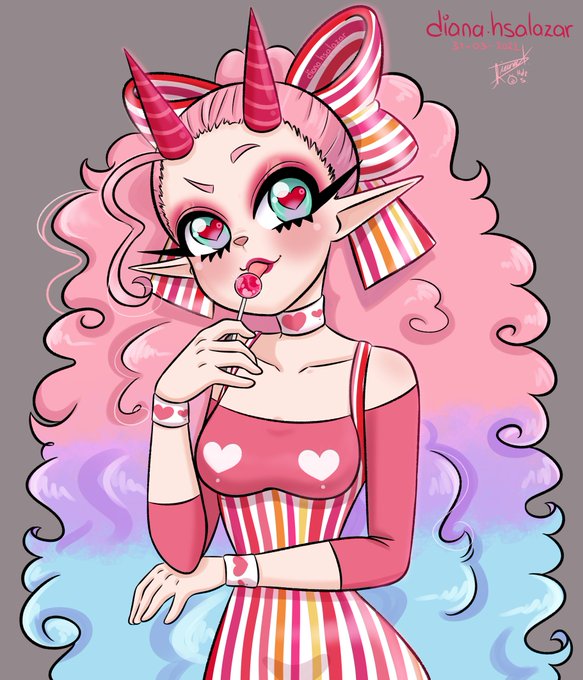 #originalcharacter #illustration #taffycotton #candycotton #idol #dibujodigital #animestyle #demongirl #ribbon #lollipop