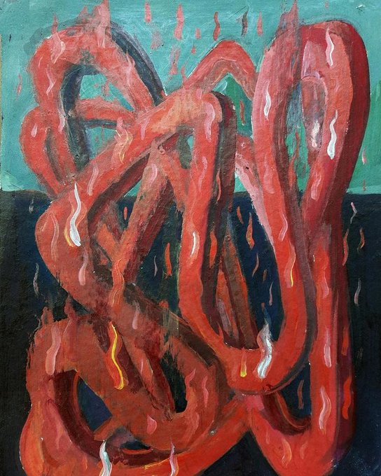 Formas en fuego 2, acrílico sobre papel, 25 x 35 cm. 2018