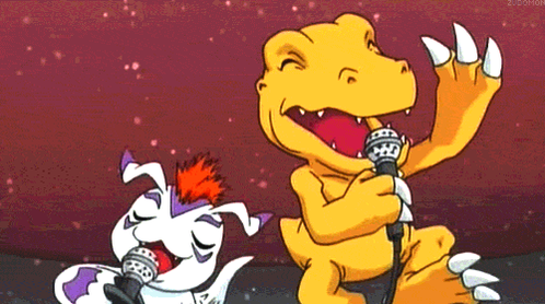 Gomamon began singing with a broken voice: "La la la la la~ 🎶"