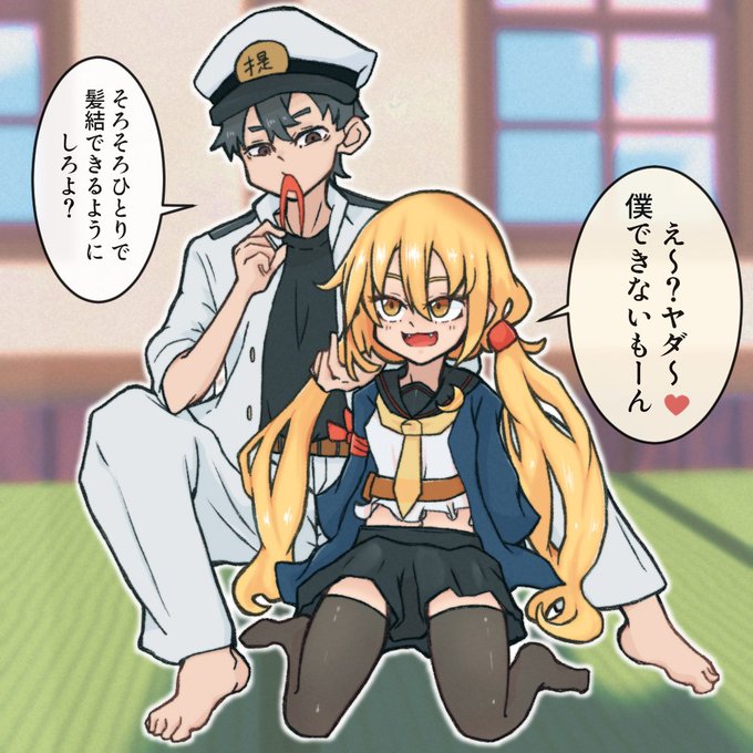 出来ました~、艦これイラストです!髪結をしてもらってる皐月ちゃん #イラスト #艦これ https://t.co/D84fns5SH7