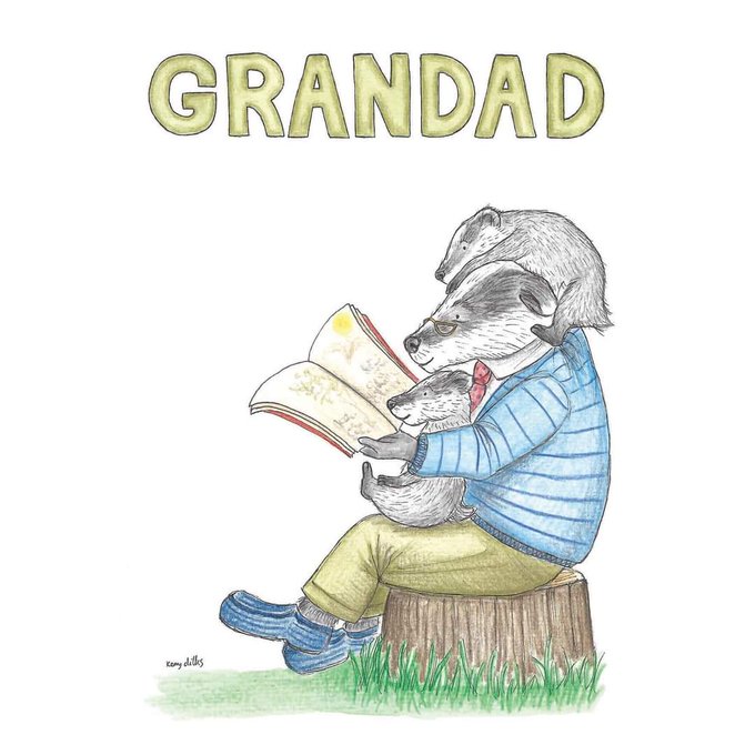 Another brand new greetings card for you! Grandad Badger spending quality time reading stories to his cheeky cubs. Cards blank inside and come with a green envelope: https://t.co/HSSvgLOQWp 💚 #illustration #justacard #grandad #etsyuk #shopsmallbusiness #Badgers #kidlitart