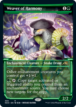 (緑)、(T):あなたがコン卜ロ一ルするエンチャン卜が発生源の起動型能力か誘発型能力を1つ対象とし、それをコピーする。あなたはコピーの新たな対象を選んでもよい https://t.co/0zV5UTuxpN