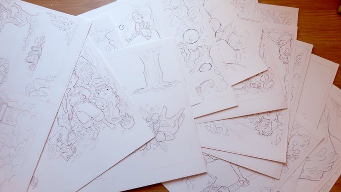 Remember Eva and Greylegs? The book is now 60% complete! All the 15 spreads are lined and ready for colour ╭( ・ㅂ・)و ̑̑ ˂ᵒ͜͡ᵏᵎ⁾✩
