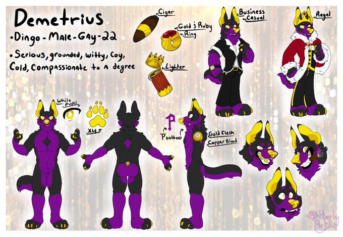 @levitator This is Demetrius, he's very quiet and reserved, but he cares a lot about the people he's close with. He's a Dingo :D