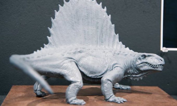 474) Como viene siendo habitual en la trilogía de Jurassic World con otros animales, a Dimetrodon le han puesto unos osteodermos que no tendría el animal real. También los tenía el diorama de Fallen Kingdom, aunque están lógicamente ausentes en el arte conceptual de Raúl Martín.