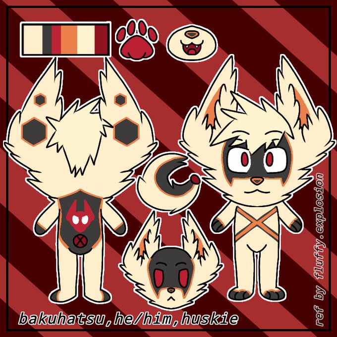 Finished two simplified chibi reference sheet of my fursona bakuhatsu and my oc midori