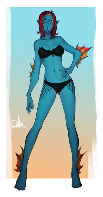 More commissions : > Designing a nightborne dress and a merfolk OC. Had a lot of fun with these!
