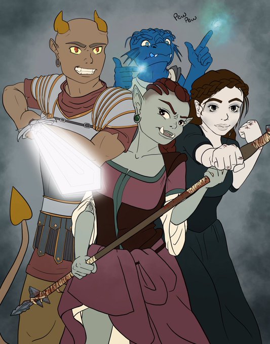 Our team headed to Waterdeep for a new adventure. Cass the Tabaxi swashbuckler, Vaski the bard, Spike the Sorcerer, and Ayula with the ornery Argynvost.#Dnd #DnDcharacter