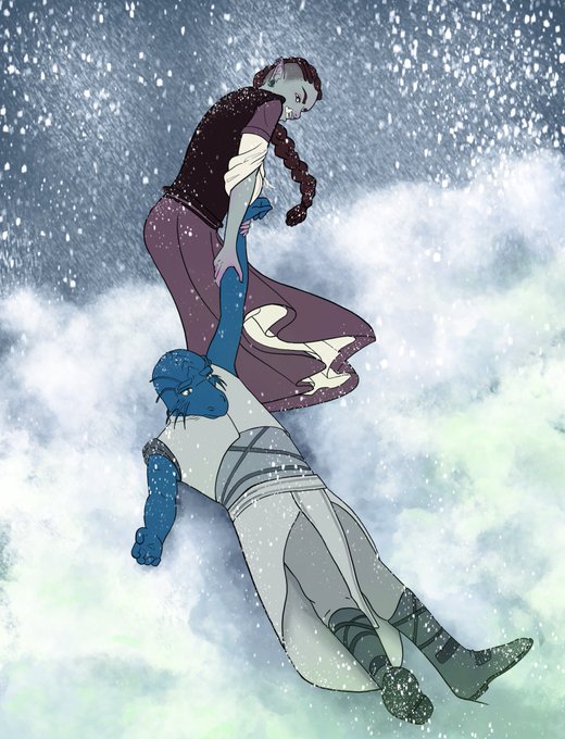After teleporting from Ravenloft to the top of a mountain, totally tapped out and half dead, Xan tried walking through a magical wall of fire, and Ayula dragged him back to the shelter they appeared in. #dnd #dungeonsanddragons #CoS #DnDcharacter #TsolenkaPass