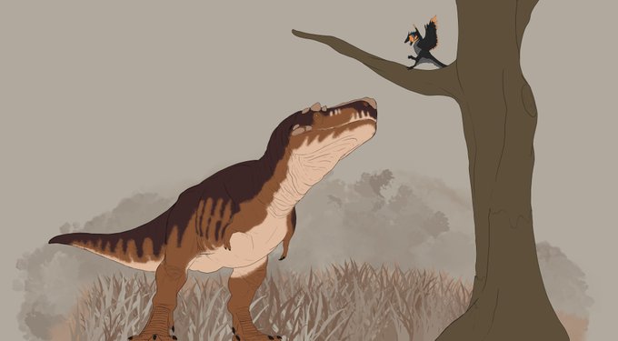 not everything in the Mesozoic was scary and filled with death, sometimes you can just see a tyrannosaurus walking around admiring the birds