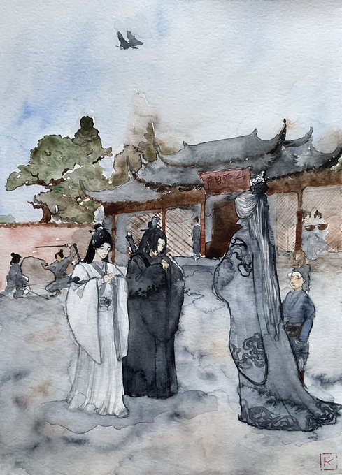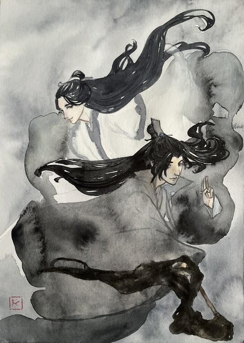 I wanted to do a reverse picture of that scene where XY bends down towards dead XXC face to “feel” his soul coming back. But with XXC ghost leaning over dying XY. #xueyang #XiaoXingChen #xiaoxue #yicityarc #MDZS #mdzsfanart #watercolor #ghost