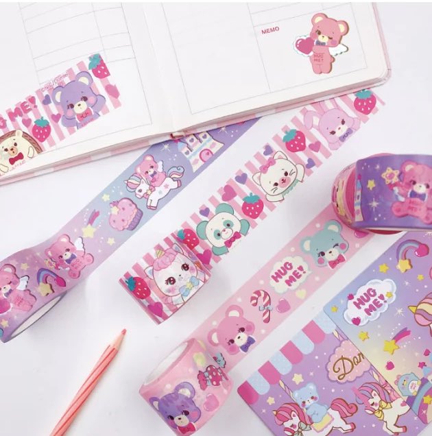 ハグミーから幅が太めのマスキングテープが登場です💖前回完売した人気柄のリメイク+新柄の全3柄です🧸🦄🌟各税込330円です❣️どうぞよろしくお願いいたします💖