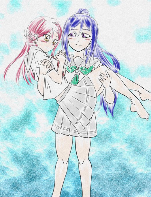 壁も良いけどお姫様抱っこも悪くない #lovelive_sunshine #松浦果南 #桜内梨子 #かなりこ