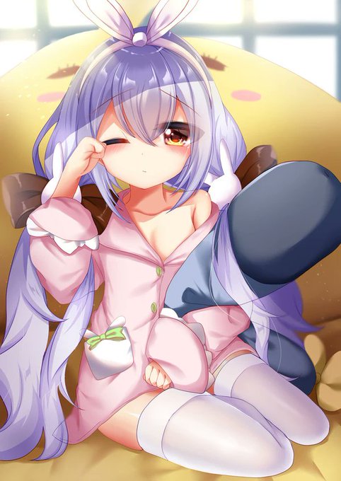 *Laffey waves at the reader as Laffey was sitting on a bench with Laffey's bunny hat*