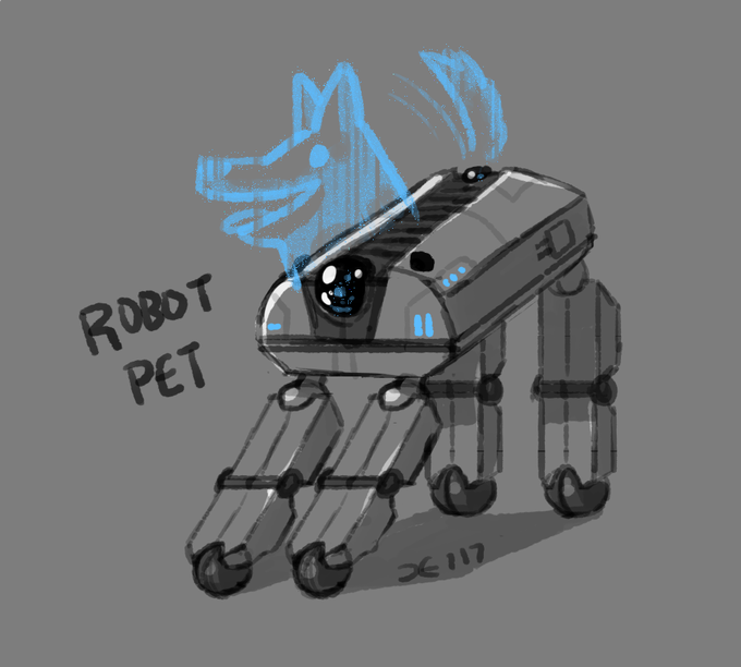 Went through some old sketchbooks. Redrew this holographic robot dog.