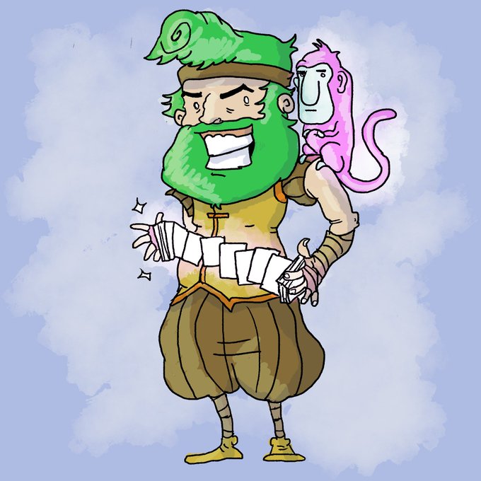 Once I created a self insert OC (like me except with good hair, Brian Blessed mouth and an illusory monkey) as part of @WorldWalkersPod patreon thing. He's a beautiful boy and 100% exists in any Dnd game I will dm from now on.