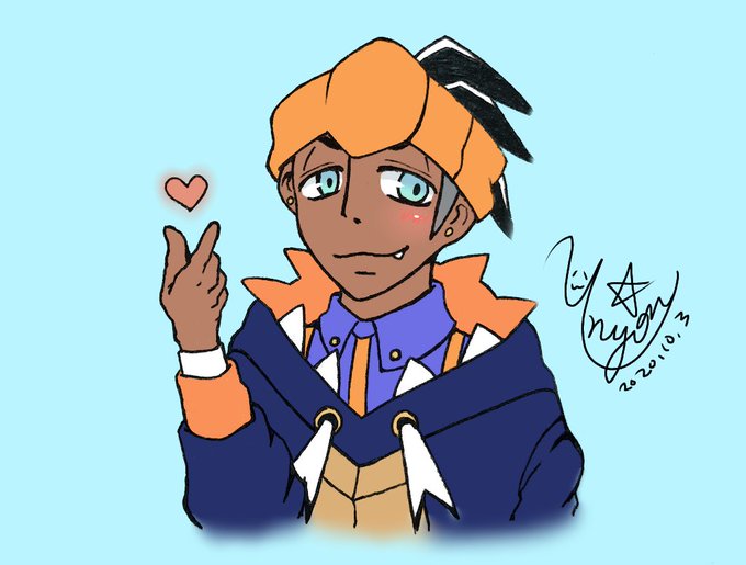 褐色肌のキャラクター初めて描くから、肌の色がなんかしっくり来ないけど、これちゃんとキバナさんになってるかな…??