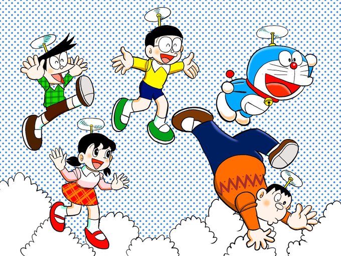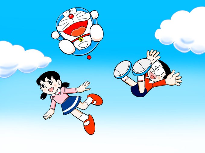 空中散歩するドラえもん達を描きました。 #ドラえもん #藤子・F・不二雄