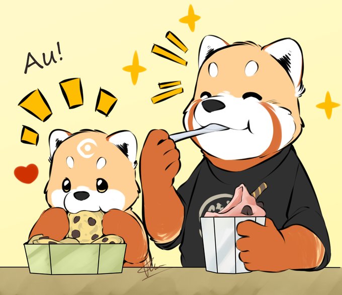 Drawing a red panda brothers eating lunch... 🥰 ❤️
