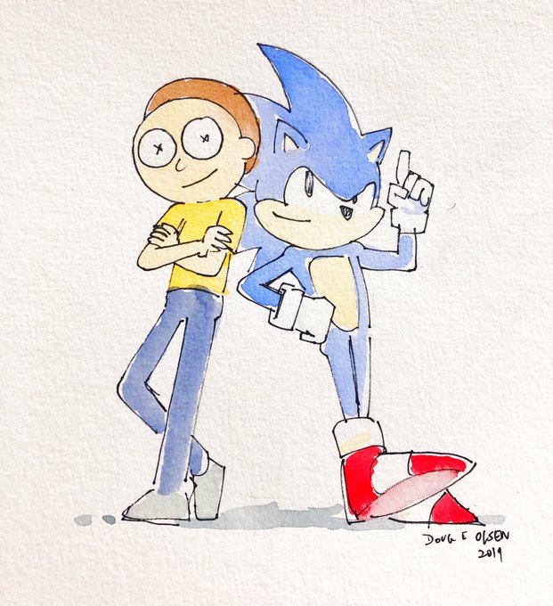 A little watercolor piece for a fan from the two productions that have consumed my life over the past 2 years. #rickandmorty #SonicTheHedgehog #sonicandmorty #SonicMovie