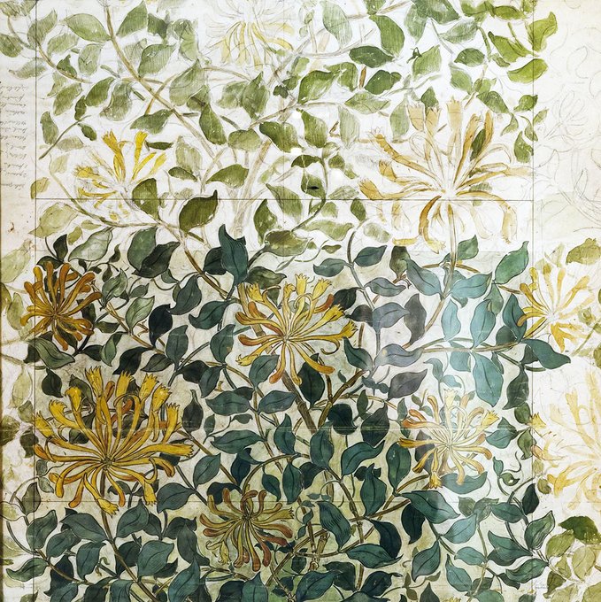 📷Maids of Honour embroidery @WMGallery Honeysuckle @WmMorrisSocUK