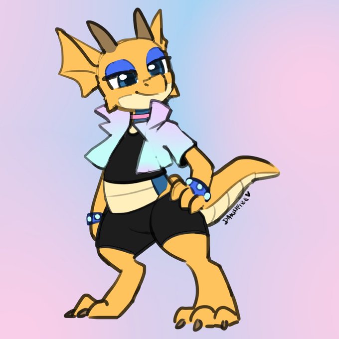 @heresvix I just like lizards and doodled one at work one day, then decided they're a blue-bellied lizard like the ones I spent HOURS catching as a kid. Fiddled with their design over the years and- oop, now they're a blue-bellied kobold!