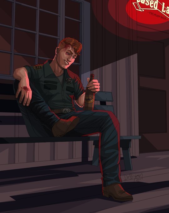 I was commissioned to draw @GLITCHEDDEAD's Far Cry 5 Deputy OC crack open a cold one, after a long day of kicking Peggie butt. Two color variants! Twice the fun! 🍻🌚🌞