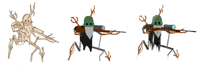 Old man type of enemy with a sniper and wood growing off him. Smaller and faster than other enemies tho