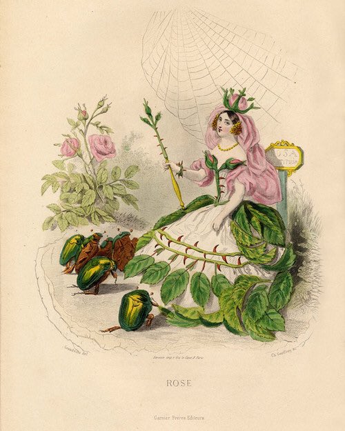 J. J. Grandville's Les fleurs animées (1847) features fashionable French ladies as wilting wildflowers & sinister herbs. 🌷🌿 A frowning Hemlock w/ mortar & pestle prepares dangerous concoctions & Narcissicus admires her reflection.