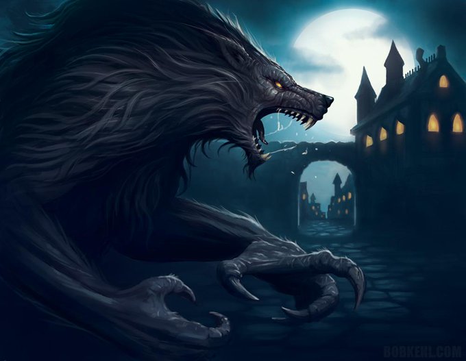 Lock your doors, villagers. (Art by Bob Kehl) #BobKehl #WerewolfArt #Werewolf