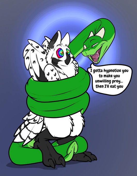 Drac cannot eat willing prey, so when he found a burb who only wants to be snekfood, they had to resolve this issue.